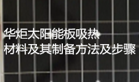 华炬新产品研究所技术咨询委员会科研人员现推荐一项一种太阳能板吸热材料及其制备方法及步骤,该技术具有如下有益效果:(1)该技术原料采用的改性成膜剂,在碱性环境下,环氧值增加,环氧树脂分子中含有反应活性很高的环氧基,该活性基团与酪素中氨基、羧基和羟基等亲水基团发生反应,从而提高了改性成膜剂的耐水性和耐湿擦性,通过添加聚酯树脂、异氰酸酯、桃胶和芦荟提取液,阻断酪素分子链间极性基团形成氢键,从而提高成膜剂的延伸性和耐曲挠性等综合性能,聚酯树脂、异氰酸酯、桃胶和芦荟提取液的加入不仅起到减少环氧树脂和干酪素的加入,降低成本,还起到降低整个材料的拉丝性,同时保证材料在粘接时的性能最好;加入酸酐和醋酸锌,除了提高粘性,还使得材料的干燥时间缩短且耐水性提高;酪素与环氧树脂分子之间的相互作用,提高了改性酪素树脂的产品拉伸性能,断裂伸长率增大,添加三甲基六亚甲基二胺,对环氧树脂起到增稠固化作用,提高了材料的韧性、粘性和耐腐蚀性。(2)该技术中选用的溶剂是专门针对本申请中的改性成膜剂设计的,能够快速将成膜剂溶解,然后与其他原料混合均匀分散,使得制备得到的材料成分分布均匀,密度相近,使用本申请制备的太阳能板吸热材料对太阳能板进行涂布后,吸热更加均匀。(3)该技术制备工艺简单、易懂,可行性高,且经过试验证明本发明制备的太阳能板吸热材料进行涂布后吸收可见光与红外光性能高,导热性高,防水性强,耐高温,耐腐蚀,稳定性能高,发射率低,透射率高,涂层附着力强,密度高,是理想的太阳能板吸热材料,具有很高的推广价值,现将该一种太阳能板吸热材料及其制备方法及步骤及实施例介绍如下供研究交流参考:(811441 331548)
