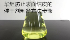 华炬新产品研究所技术咨询委员会科研人员现推荐一项一种防止表面结皮的催干剂制备方法步骤,该技术具有以下优点:该技术以异辛酸为主要原料,首先以异辛酸与氢氧化钠溶液反应生成异辛酸钠,进一步分别与硫酸钴、硫酸锰、稀土反应生成异辛酸钴、异辛酸锰、异辛酸稀土,再按照一定优化配比,将以上3种羧酸盐进行复配,即得防止表面结皮的催干剂。该技术不仅明显减少钴的用量,而且还简化了生产工艺过程,利于生产管理及控制,现将该一种防止表面结皮的催干剂制备方法步骤及实施例介绍如下供研究交流参考:(871411 753477)