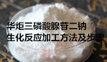 华炬新产品研究所技术咨询委员会科研人员现推荐一项一种三磷酸腺苷二钠生化反应加工方法及步骤,该技术与现有技术相比,本发明具有以下优点:1、现有技术中,生化反应的酶促反应金属离子化合物是选用硫酸镁,但是后续工艺中使用的强碱性阴离子树脂对硫酸根离子的吸附能力很强,对后期的树脂再生再生处理带来很大困难,会引入新的杂质离子;而用氯化镁替代硫酸镁,强碱性阴离子树脂对氯离子的吸附能力比对硫酸根离子的吸附能力弱,利于后期的树脂再生再生处理,不会引入新的杂质离子。2、现有技术中,在树脂分离工序的上样时,是采用单条树脂柱上样至结束,单条树脂柱上样会有很多弊端,比如单条树脂柱上样往往容易流穿且流速需实时控制、延长了上样时间而且产品量还收率较低;而该技术采用串柱上样可以显著提高流速,缩短上样时间50%以上,且因为是串柱洗涤,产品流穿的可能性也小了很多,极大的提高了产品的收率,收率提高30%以上。3、现有技术使用酵母,一般是直接使用啤酒厂生产啤酒后废弃的酵母泥,这样会存在一些不足,例如酵母泥的卫生条件不好、不耐久存等,而该技术通过将啤酒酵母泥用适量反渗透水清洗,然后再用板框过滤器过滤,得到白色或淡褐色泥状物,再通过速冻得到,一方面可以清洗干净酵母泥,而且通过速冻,可以长期保存酵母泥,通过本发明得到速冻酵母,在生产中,生化反应的AR转化不会逆转,腺苷的转化率达到100%。4、现有技术中,干燥方法的选择,是采用一步法真空干燥或者在干燥时加五氧化二磷吸湿,但是以上两种方法都存在不足,一步法真空干燥,时间长;而添加五氧化二磷吸湿,容易在产品中引入杂质,且五氧化二磷溶于水产生大量热破坏产品,这在产品含水量大时尤其容易发生,而且每次更换五氧化二磷也是比较麻烦的操作。该技术采用两段法真空干燥,既避免了污染的发生,又节约了时间,现将该一种三磷酸腺苷二钠生化反应加工方法及步骤及实施例介绍如下供研究交流参考:(511271 2215229)