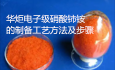 华炬新产品研究所技术咨询委员会科研人员现推荐一项一种电子级硝酸铈铵的制备工艺方法及步骤,该技术具有以下有益效果:该技术产品产物中非稀土的金属杂质离子含量很低——经实验证明,电子级硝酸铈铵中Ca离子浓度不高于0.00005%、Fe离子浓度不高于0.00005%、Pb离子浓度不高于0.00003%、K离子浓度不高于0.00005%、Na离子浓度不高于0.00005%、Al离子浓度不高于0.00005%、Cu离子浓度不高于0.00005%、Cr离子浓度不高于0.00005%、Co离子浓度不高于0.00005%、Ni离子浓度不高于0.00005%、Mn离子浓度不高于0.00005%、Mg离子浓度不高于0.00005%、Ti离子浓度不高于0.00005%,现将该一种电子级硝酸铈铵的制备工艺方法及步骤及实施例介绍如下供研究交流参考:(511271 421595)