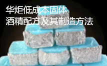 现有技术中,由于固体酒精便于携带,因此人们在宾馆、旅游、地质等场合经常使用。但存在着如下问题:硬度不好,尤其在温度较高时不便保存,经常比需采用铁盒来保管;燃烧时有异味,燃烧后残渣较大等。华炬新产品研究所技术咨询委员会科研人员现推荐一项一种低成本固体酒精配方及其制造方法,该技术的有益效果在于:1、由于该技术均采用常规的制作酒精的材料,因此加工成本低;2、由于该技术加工制作的酒精由于硬度高,因此便于保管使用,并且在使用中无异味,现将该一种低成本固体酒精配方及其制造方法及实施例介绍如下供研究交流参考:(511321 231615)