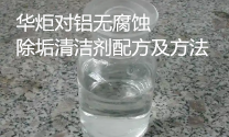华炬新产品研究所技术咨询委员会科研人员现推荐一项一种对铝无腐蚀除垢清洁剂配方及方法,该技术目的是对家用水加热容器绝大多数为铝质而开发的,因铝及其氧化物是两性的,既溶于酸又溶于碱,所以在清洗时,一定要保持铝质不受浸蚀,兼顾其它材质容器不受侵蚀或轻微浸蚀,同时还能清除尿垢等达到多功能。与现有的技术相比,具有以下优点:反应时无气味,浓度在15%以下,对铝无腐蚀作用,并且清洗效果好,现将该一种对铝无腐蚀除垢清洁剂配方及方法及实施例介绍如下供研究交流参考:(541411 217481)