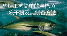 华炬新产品研究所技术咨询委员会科研人员现推荐一项一种工艺简单的金枪鱼冻干粉及其制备方法,该技术与现有技术相比具有的有益效果为: 1.该技术的金枪鱼冻干粉味道鲜美、无刺、开胃、易消化;且有一定的 药用功效;食用方便,特别适合老人和儿童食用。2.该技术异于同类产品之处在于在金枪鱼冻干粉配方中添加有针对治疗 贫血的精选的多种无怪味的中药食材组分,各组分不仅可发挥各自的功效, 还能发挥各组分之间的协同功效。3.该技术的制备方法工艺简单,操作性强,生产周期短,适合工业化生 产,现将该一种工艺简单的金枪鱼冻干粉及其制备方法及实施例介绍如下供研究交流参考:(341211 353545)