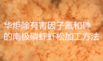 华炬新产品研究所技术咨询委员会科研人员现推荐一项一种除有害因子氟和砷的南极磷虾虾松加工方法,该技术与现有技术相比该技术在加工方法中,通过取肉、蒸煮、挤压、脱脂、水洗、调味、烘干、撕碎和炒松等步骤,有效去除了有毒有害的氟和砷,开发了高品质的南极磷虾虾松,现将该一种除有害因子氟和砷的南极磷虾虾松加工方法及实施例介绍如下供研究交流参考:(341311 451455)