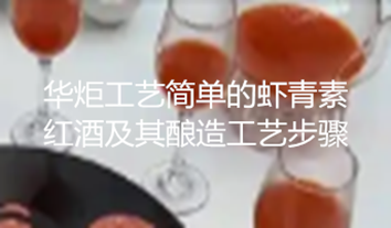 华炬新产品研究所技术咨询委员会科研人员现推荐一项一种工艺简单的虾青素红酒及其酿造工艺步骤,该技术与现有技术相比,具有如下的优点和有益效果:1、该技术产品生产成本低、工艺简单,利于大规模生产。2、该技术无有害添加剂或毒性残留。3、该技术制备的虾青素红酒中虾青素和氨基态氮均较高,且总酸适宜、酒精、总糖较低,4、解决了现有天然虾青素提取难度大、成本高的问题,现将该一种工艺简单的虾青素红酒及其酿造工艺步骤及实施例介绍如下供研究交流参考:(341311 563589)