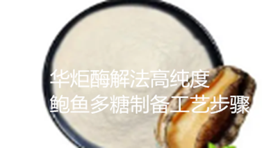 华炬新产品研究所技术咨询委员会科研人员现推荐一项一种酶解法高纯度鲍鱼多糖制备工艺步骤,该技术与现有技术相比的有益效果为:该技术的制备工艺方法简单,鲍鱼多糖的纯度大,提取率高,所制备的第二级鲍鱼多糖具有优良的抗肿瘤活性;通过脱脂处理,避免了脂质对后续提取和纯化过程的影响,提高了所制备的鲍鱼多糖的纯度;通过酶解法提取鲍鱼多糖,能够有效破坏蛋白质与多糖之间的结合键,使鲍鱼多糖能够被充分提取,提高鲍鱼的资源利用率,现将该一种酶解法高纯度鲍鱼多糖制备工艺步骤及实施例介绍如下供研究交流参考:(341371 237495)