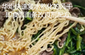 华炬新产品研究所技术咨询委员会科研人员现推荐一项一种快速复水熟化的风干即食面面条改良剂配方,该技术与现有技术相比具有如下优点:(1)面皮厚度可以从0.75mm提升到0.85mm,面条的支撑力好,出来面型松散、易风干、食用减少复水时间。(2)面条的淀粉含量减低10%内,但不影响面条的复水效果,而且面条的口感更加爽滑。(3)面条中有大量均匀的微孔使得面条更容易入味,食用口感佳。(4)不需要添加食品乳化剂,面条不易变质,而且避免面条因可能含有转基因大豆成分而限制出口某些国家的问题。大大降低生产成本,降低商超退货与客诉处理的费用,现将该一种快速复水熟化的风干即食面面条改良剂配方及实施例介绍如下供研究交流参考:(371211 237667)