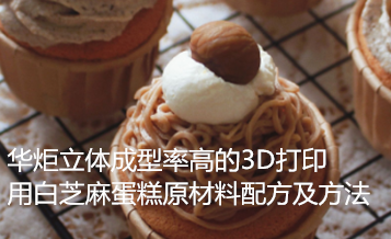 华炬新产品研究所技术咨询委员会科研人员现推荐一项一种立体成型率高的3D打印用白芝麻蛋糕原材料配方及方法,该技术具有以下有益效果:(1)该技术的3D打印用白芝麻蛋糕原材料含有钾成分,可提高打印时的升温速率,提高熔点;(2)该技术的3D打印用白芝麻蛋糕原材料含有黑豆卵磷脂的纤维素成分,可提高模型立体成型率;(3)该技术在白芝麻蛋糕原材料精炼后没有按传统进行调温使用,而是直接定量罐装,方便储存和运输,且可随用随取,使白芝麻蛋糕原材料的3D打印离开工厂实现异地打印,使用操作方便;(4)该技术对白芝麻蛋糕原材料进行精磨结合精炼过程来处理物料,降低物料的颗粒尺寸,提高白芝麻蛋糕的平滑口感,制得的白芝麻蛋糕原材料溶化后流动性好,作为原料用于3D打印时不会堵孔,且打印的白芝麻蛋糕产品不易发花发白,可实现创意制作的多元化,高精度,复杂曲面,造型独特的白芝麻蛋糕产品,颠覆传统的模具浇注模式,完全摆脱模具束缚,满足人们的个性化订制市场,现将该一种立体成型率高的3D打印用白芝麻蛋糕原材料配方及方法及实施例介绍如下供研究交流参考:(371211 431603)