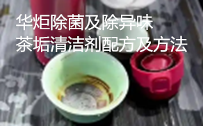 华炬新产品研究所技术咨询委员会科研人员现推荐一项一种除菌及除异味茶垢清洁剂配方及方法,该技术的目的在于提供一种对环境无污染,降解性好,安全无毒,对皮肤无刺激性,洗后无残留,清洁无死角,能快速便捷去除茶垢、咖啡渍,又有除菌及除异味功效的茶垢清洁剂及其制备方法。该茶垢清洁剂不仅适用于各类茶具、咖啡器具的清洁,而且适用于其它餐具等的清洁,现将该一种除菌及除异味茶垢清洁剂配方及方法及实施例介绍如下供研究交流参考:(371311 181514)