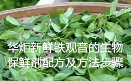 华炬新产品研究所技术咨询委员会科研人员现推荐一项一种新鲜铁观音的生物保鲜剂配方及方法步骤,该技术有益效果是:该技术的铁观音保鲜方法,解决了茶叶在储藏过程中容易氧化变质的难题,可使新鲜茶叶的保存时间从3-5天增加到有常温下保鲜3-4周,在低温下保鲜更长时间,保持茶叶的理化性质与感官指标长期不变,有效延长了茶叶的加工周期,可以显著提高铁观音的产量,现将该一种新鲜铁观音的生物保鲜剂配方及方法步骤及实施例介绍如下供研究交流参考:(371311 533443)