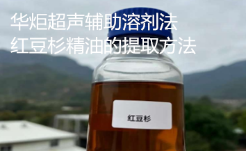 华炬新产品研究所技术咨询委员会科研人员现推荐一项一种超声辅助溶剂法红豆杉精油的提取方法步骤,该技术和现有技术相比的优点在于:1、采用超声辅助溶剂法提取红豆杉挥发油,利用单因素和正交实验相结合的方法得到最佳工艺参数,提高红豆杉精油得率。2、对使用过的有机溶剂进行蒸馏回收再利用,损耗控制在5%左右,降低成本。3、对过滤后所得滤渣进行再加工用于动物饲料,实现原料的完全利用。4、该技术方法简单,配合各个参数的合理搭配,实现成本低、效果好、速度快,取得了显著的进步,现将该一种超声辅助溶剂法红豆杉精油的提取方法步骤及实施例介绍如下供研究交流参考:(271211 131466)