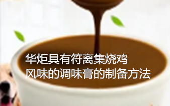 华炬新产品研究所技术咨询委员会科研人员现推荐一项一种具有符离集烧鸡风味的调味膏制备方法,该技术具有的有益效果: 该技术制备了一种符离集烧鸡风味的调味膏的制备方法,将具有悠久历史文化的中国 美食-符离集烧鸡的风味可以较大范围内推广。制得的调味膏将其应用于香肠、火腿、速 冻食品、休闲小食品中方便快捷,且具有广阔的市场认知度,此符离集烧鸡风味调味膏的 推出必将赢得广阔的市场,更加的开发拓展中国悠久的美食文化,现将该一种具有符离集烧鸡风味的调味膏的制备方法及实施例介绍如下供研究交流参考:(311311 321574)