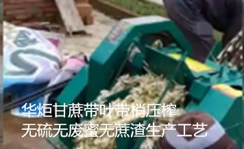 华炬新产品研究所技术咨询委员会科研人员现推荐一项一种甘蔗带叶带梢压榨无硫无废蜜无蔗渣生产工艺,该技术工艺的有益效果是完全利用了甘蔗资源,极大地减轻了砍削甘蔗人员的劳动强度和减少劳力,增加了蔗农的经济收入和大幅度提高了制糖企业的经济效益,现将该一种甘蔗带叶带梢压榨无硫无废蜜无蔗渣生产工艺及实施例介绍如下供研究交流参考:(211241 343479)