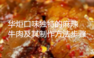 华炬新产品研究所技术咨询委员会科研人员现推荐一项一种口味独特的麻辣牛肉及其制作方法步骤,该技术与现有技术相比的有益效果为: (1)口味独特、麻辣适宜; (2)几乎不含油分,包装后,在运输过程中即使发生破袋现象,也能够避免油水四流,弄脏车厢以及其他包装袋; (3)无需利用油水浸泡,消费者能够放心购买; (4)提供一种新的麻辣牛肉,改善现有技术中只有辣椒油浸泡的麻辣牛肉的工艺的单一性,现将该一种口味独特的麻辣牛肉及其制作方法步骤及实施例介绍如下供研究交流参考:(11241 324549)