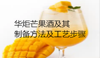 华炬新产品研究所技术咨询委员会科研人员现推荐一项一种芒果酒及其制备方法及工艺步骤,该技术芒果酒的制备方法以芒果作为原料酿造果酒,工艺简单, 为芒果深加工开拓了新思路,并增加了芒果的附加产值。在酿造过程中过 滤掉的各种芒果渣滓可以用来制备动物饲料及其他附加产品,实现了芒果 的全面利用,使其营养价值实现了最大化利用。 根据该技术芒果酒的制备方法制得的芒果酒。该芒 果酒色泽淡黄、澄清透明,有光泽,无明显悬浮物,无沉淀;具有纯正, 优雅和谐的芒果果香和酒香;具有纯正的口感和陈酿酒香味,酸甜协调, 酒体丰满。经测试,酒精度、挥发酸、干物质浸出物等理化指标以及细菌 总数等卫生指标均符合国家标准。该芒果酒风味独特,营养丰富,富含蛋 白质、各种氨基酸以及矿物质,可作为饮料引用,具有保健作用,现将该一种芒果酒及其制备方法及工艺步骤及实施例介绍如下供研究交流参考:(241441 233578)