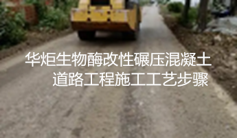 华炬新产品研究所技术咨询委员会科研人员现推荐一项一种生物酶改性碾压混凝土道路工程施工工艺步骤,该技术所要解决的技术问题是提供一种生物酶改性碾压混凝土道路工程施工工艺,即提供一种以生物酶为固化剂的,修建造价低廉、施工容易、无污染且低碳环保道路工程施工工艺。该技术的有益效果是生物酶加固的道路基层具有较高的强度和水稳定性,对土壤有很好的稳定固化作用。与水泥稳定砂等传统筑路材料和方法相比,生物酶道路承载性能高,路用性能好,感觉平稳、无颠簸、胎噪小;施工工艺简单,不需专门的施工机械,厂拌及路拌法施工都满足质量要求,施工速度快;成本低,与传统筑路技术相比,生物酶道路工程施工技术可节约资金10-20%,具有显著的经济效益和社会效益;养护简单、稳定性高、无污染,生物酶道路工程施工技术不排污,无毒、无腐蚀,真正做到了强基薄面,生物酶筑路技术大幅度减少了石灰、水泥用量,从而节约资源,所采用材料多为弃渣、弃土、洞渣、建渣等废弃材料,减少了对生态环境的破坏,具有显著的经济效益和社会效益,现将该一种生物酶改性碾压混凝土道路工程施工工艺步骤及实施例介绍如下供研究交流参考:(771211 251487)