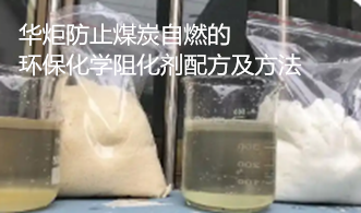 华炬新产品研究所技术咨询委员会科研人员现推荐一项一种防止煤炭自燃的环保化学阻化剂配方及方法,该技术防止煤炭自燃的环保化学阻化剂,其主要成分为过氧化尿素(或者是过碳酸钠)、水溶性环保阻燃剂、渗透剂、薄荷油(或者是桉叶油)、及溶剂水组成;利用测量CO产生量的阻化率测定方法测定阻化率:(裸煤CO发生率一处理后样品煤CO发生氯)÷裸煤CO发生率=阻化率%