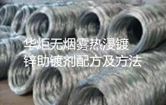 华炬新产品研究所技术咨询委员会科研人员现推荐一项一种无烟雾热浸镀锌助镀剂配方及方法,该技术的优点和积极效果是:本助镀剂中不含氯化铵,因此不会产生烟雾,并且有效提高了钢丝表面的助镀效果,防止助镀后钢丝表面在空气中被二次氧化,提高了钢丝表面的镀层质量。该技术溶剂配制简单,使得热镀锌钢丝表面镀层致密、光滑、无微孔,耐腐蚀性能好,现将该一种无烟雾热浸镀锌助镀剂配方及方法及实施例介绍如下供研究交流参考:(611511 223387)
