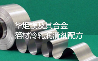 华炬新产品研究所技术咨询委员会科研人员现推荐一项一种镁及其合金箔材冷轧润滑剂配方,该技术的镁及其合金箔材冷轧润滑剂的显著特点是有良好的润滑性能,增加变形区内油膜强度,降低摩擦系数,组成和性能稳定;不易发生轧件与轧辊热粘着现象,具有良好的清洁、冷却、易扩散和冲洗性能;对金属和设备无腐蚀,无毒性,无刺激性气味,现将该一种镁及其合金箔材冷轧润滑剂配方及实施例介绍如下供研究交流参考:(611511 264398)