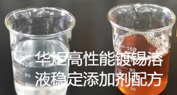 金属件镀锡可有效防止氧化和抗腐蚀,使用广泛,目前的镀锡稳定添加剂存在产品镀层表面光洁度差、不均匀、结合强度低和光亮度差,镀锡溶液稳定性低,易浑浊使用时间短需要频繁更换存在浪费等缺点。华炬新产品研究所技术咨询委员会科研人员现推荐一项一种高性能镀锡溶液稳定添加剂配方,该技术配方合理,镀锡溶液性能稳定使用时间长,电镀后的产品得到可焊性好耐腐蚀的镍锡合金,镀层均匀表面光亮度高,现将该一种高性能镀锡溶液稳定添加剂配方及实施例介绍如下供研究交流参考:(611511 233422)