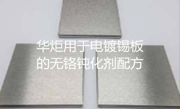华炬新产品研究所技术咨询委员会科研人员现推荐一项一种用于电镀锡板的无铬钝化剂配方,该技术的用于电镀锡板的无铬钝化剂具有如下优点:1.该技术的用于电镀锡板的无铬钝化剂无强烈刺激性气味,不含铬,健康环保;2.该技术的用于电镀锡板的无铬钝化剂具有优良的防锈性;3.该技术的用于电镀锡板的无铬钝化剂性能稳定。4.该技术配方生产的无铬钝化剂,属于环保产品,耐蚀性能优良,现将该一种用于电镀锡板的无铬钝化剂配方及实施例介绍如下供研究交流参考:(611511 233544)