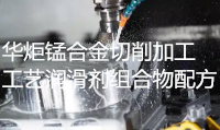 华炬新产品研究所技术咨询委员会科研人员现推荐一项一种锰合金切削加工工艺润滑剂组合物配方,该技术的显著优点:该技术的组合物具有良好的冷却、润滑、扩散、清洗、防腐、低挥发性能,热容量大,对油漆的相溶性良好,表面光洁度高,抗腐蚀周期长;稳定性、润滑性、抗腐蚀性能好,热氧化安定性优良,现将该一种锰合金切削加工工艺润滑剂组合物配方及实施例介绍如下供研究交流参考:(611511 241262)