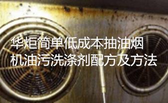 目前市场上有各种品牌的抽油烟机油污洗涤剂,但一般生产成本高,去油污的效果不够好。华炬科技新产品研究所技术咨询委员会科研人员现推荐一项一种简单低成本抽油烟机油污洗涤剂配方及方法,该技术的优点是使用效果好,去油污力强,生产成本低,无毒副作用,可广泛用于除去厨房中各种炊具包括炉具,抽油烟机上的油污和烟垢,现将该一种简单低成本抽油烟机油污洗涤剂配方及方法及技术方案实施例介绍如下供研究交流参考:(571211 441519)