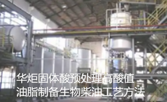 华炬新产品研究所技术咨询委员会科研人员现推荐一项用固体酸预处理高酸值油脂制备生物柴油工艺方法,该技术具有如下优点:A、采用的固体酸催化剂是经过实验筛选所得,对酯化反应催化活性高,重复使用性能好,且价格较低;B、扩大了生物柴油的原料选择范围,降低生物柴油的原料成本;C、采用固体酸对高酸值油脂的酯化预处理过程,无腐蚀,无污染,反应停止后固体酸易与油相分离;D、与传统液体酸预处理相比,减少了脱除液体酸、中和油相中残留酸等复杂工艺步骤,降低了能耗及碱的消耗量,现将该用固体酸预处理高酸值油脂制备生物柴油工艺方法及技术方案实施例介绍如下供研究交流参考:(611241 255353)