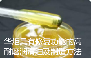 华炬新产品研究所技术咨询委员会科研人员现推荐一项一种具有修复功能的高耐磨润滑油及制造方法,该技术优点:该技术简单实用,制得的润滑油成本低,对发动机具有明显的抗磨和减磨效果,良好的修复功能,且对机械内部都没有腐蚀作用,现将该一种具有修复功能的高耐磨润滑油及制造方法及技术方案实施例介绍如下供研究交流参考:(611241 321517)