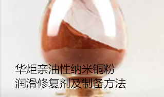 华炬新产品研究所技术咨询委员会科研人员现推荐一项一种亲油性纳米铜粉润滑修复剂及制备方法,该技术主要优势在于:1.本技术涉及的亲油性纳米铜粉润滑修复剂能够明显提高润滑油、齿轮油、润滑脂的润滑效果。其特征在于与未添加该技术所涉及的亲油性纳米铜粉润滑修复剂的润滑介质相比,添加了该技术所涉及的亲油性纳米铜粉润滑修复剂的润滑介质其润滑性能具有明显的改善,同时具有自修复功能。与有机物添加剂产品相比,该技术涉及的亲油性纳米铜粉润滑修复剂不存在高温下的结块和碳化现象。2.该技术提出了一种使纳米铜粉实现亲油性、易分散性、抗氧化性的方法,从而大大简化了防止内米铜粉团聚和氧化、变质的工艺流程,在制备该技术涉及的亲油性纳米铜粉润滑修复剂时,纳米铜粉易于分散并长时间保持稳定状态。同时,该技术也大幅度降低了纳米铜粉长期保存成本。3.该技术涉及的亲油性纳米铜粉润滑修复剂在考虑到明显提高润滑油、齿轮油、润滑脂的润滑效果的同时,也考虑到纳米铜粉配比对改善润滑介质散热性能的影响,这一点是已公告的专利CN03109198.9所没有提到的。由于以上影响因素的优化,润滑油及其它润滑介质的氧化问题得到明显的改善。4.该技术涉及的亲油性纳米铜粉润滑修复剂在制备过程中无需球磨处理,从而减少了材料的污染环节并降低了加工成本,现将该一种亲油性纳米铜粉润滑修复剂及制备方法及技术方案实施例介绍如下供研究交流参考:(611241 321525)