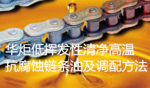 华炬新产品研究所技术咨询委员会科研人员现推荐一项一种低挥发性清净高温抗腐蚀链条油及调配方法,该技术与现有技术相比的有益效果是:该技术提供了一种低挥发性清净高温抗腐蚀 链条油及其调配方法,其制得的高温链条油可适用于环境温度为260℃及以下链条的润滑, 产品较传统的高温链条油具有较小的挥发性,减少使用过程中的油雾产生,满足环保的要 求,并可降低润滑油使用消耗;另外配合高性能的抗磨剂及抗腐蚀剂,高温下产生油泥、 结焦少,可长期保持链条清洁,烷基萘配合特定的双季戊四醇复合酯、季戊四醇酯基础油 具有极优的润滑性,有利于链条磨损保护,且可降低设备运行能耗,并能大幅度减少油烟 产生,改善环保状况,本发明配方独特,具有抗磨及抗腐蚀性优良,润滑与清净性好、结 焦少、蒸发损失小的特点,尤其适用于印染行业热定型机、木材制造加工、高温烘箱等设备链条润滑的低挥发性清净高温链条油,现将该一种低挥发性清净高温抗腐蚀链条油及调配方法及技术方案实施例介绍如下供研究交流参考:(611241 351281)