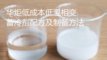 华炬新产品研究所技术咨询委员会科研人员现推荐一项一种低成本低温相变蓄冷剂配方及制备方法,该技术产品同时具有成本低、工艺简单、无毒无害、对金属设备基本无腐蚀等优点,现将该一种低成本低温相变蓄冷剂配方及制备方法及技术方案实施例介绍如下供研究交流参考:(971421 323608)