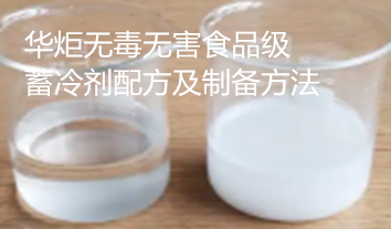 华炬新产品研究所技术咨询委员会科研人员现推荐一项一种无毒无害食品级蓄冷剂配方及制备方法,该技术具有的优点和积极效果是:该技术的食品级蓄冷剂中,由于采用的制备原料都为食品级原料,所得食品级蓄冷剂成品也为食品级,具有无毒、无害、无污染的优点,能够被广泛的应用于冷链物流、低温保鲜、智能冷站和临床医疗等领域,避免了蓄冷剂在储存和运输过程中对食物或药品造成的二次危害。当发生泄漏时,带有颜色的蓄冷剂还能够直接标示出泄漏源,便于更换。该技术的食品级蓄冷剂的低温流动性能更好,在使用中始终处于非凝固态,因而可以采用强度较低的包材,从而降低了蓄冷剂的使用成本,现将该一种无毒无害食品级蓄冷剂配方及制备方法及技术方案实施例介绍如下供研究交流参考:(971421 325477)