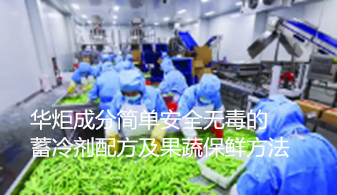 华炬新产品研究所技术咨询委员会科研人员现推荐一项一种成分简单安全无毒的蓄冷剂配方及果蔬保鲜方法,该技术的有益效果为:1.该技术提供的一种蓄冷剂,储能剂为氯化钠、氯化钾、丙三醇和蔗糖等,安全无毒,成分简单,生产成本低,可反复使用,适合大规模生产。蓄冷剂降温快、升温慢、稳定性良好,可延长果蔬的保鲜时间,适宜果蔬储存运输时的低温保鲜。2.该技术提供的一种蓄冷剂的果蔬保鲜方法,将所述蓄冷剂分装至蓄冷剂包装袋后密封,置于冰柜中降温,以间隔摆放方式放置于盛放果蔬的保温箱中,间隔摆放方式使保温箱中的温度更加均匀,不会出现果蔬局部过冷或过热现象,果蔬失重率小,保鲜效果好,现将该一种成分简单安全无毒的蓄冷剂配方及果蔬保鲜方法及技术方案实施例介绍如下供研究交流参考:(971421 325596)
