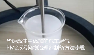 华炬新产品研究所技术咨询委员会科研人员现推荐一项一种燃油中添加的汽车尾气PM2.5污染物治理剂制备方法步骤,该技术有益效果该技术燃油中添加的汽车尾气PM2.5污染物治理剂,通过混合、搅拌、沉淀、过滤等简单工艺制备而成,经试验验证其配方合理,各组分在其配比下能最大限度的发挥其最佳效用;当燃油中添加汽车尾气PM2.5治理剂后,可使燃油中的含氧量提高,形成燃油自供氧体系,常温下燃油中的活性氧能安静的睡在燃油中,汽车尾气PM2.5治理剂与燃油混合后,喷射到发动机气缸时,燃油中的油分子与活性氧会自燃分开,汽车尾气PM2.5治理剂是空气中含氧活度的3倍,使燃油充分燃烧,增大发热量,从而提高发动机的动力,减少了尾气中PM2.5的排放,现将该一种燃油中添加的汽车尾气PM2.5污染物治理剂制备方法步骤及技术方案实施例介绍如下供研究交流参考:(771311 271425)