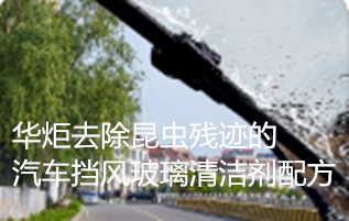 华炬新产品研究所技术咨询委员会科研人员现推荐一项一种去除昆虫残迹的汽车挡风玻璃清洁剂配方,该技术的有益效果:1.可去除昆虫残迹等顽固污渍:例如,速度为110公里/小时,当有昆虫残迹时,喷射该技术的产品,转动雨刮器10~15秒,雨刮器接触到的部分挡风玻璃无昆虫残迹;2.会使雨刮器的橡胶部分变得柔韧、并延缓老化:本产品在清洁挡风玻璃同时,还会使雨刮器的橡胶部分变得柔韧,使其与挡风玻璃完全接触,挡风玻璃就不会留下任何污迹,而且同时延缓雨刮器橡胶部分在风吹、雨淋、日晒恶劣环境中快速老化变硬,延长雨刮器的橡胶部分使用寿命一倍以上;