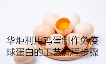 华炬新产品研究所技术咨询委员会科研人员现推荐一项一种利用鸡蛋制作免疫球蛋白的工艺流程步骤,该技术与现有技术相比本方法具有以下优势: 1、采用该技术提取分离得到的免疫球蛋白IgY收率和纯度高,收率可达80%以上,纯度可达95%以上; 2、该技术提取、分离的条件比较温和,有利于保持免疫球蛋白IgY的天然构象和生物活性,提取分离得到的免疫球蛋白IgY活性较高; 3、提取分离的周期短,蒸馏水消耗低,步骤简单,适合大规模高效率生产,现将该一种利用鸡蛋制作免疫球蛋白的工艺流程步骤及技术方案实施例介绍如下供研究交流参考:(311311 317297)