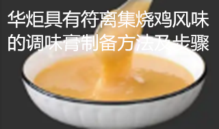 华炬新产品研究所技术咨询委员会科研人员现推荐一项一种具有符离集烧鸡风味的调味膏制备方法及步骤,该技术所具有的有益效果: 制备了一种符离集烧鸡风味的调味膏的制备方法,将具有悠久历史文化的中国 美食-符离集烧鸡的风味可以较大范围内推广。制得的调味膏将其应用于香肠、火腿、速 冻食品、休闲小食品中方便快捷,且具有广阔的市场认知度,此符离集烧鸡风味调味膏的 推出必将赢得广阔的市场,更加的开发拓展中国悠久的美食文化,现将该一种具有符离集烧鸡风味的调味膏制备方法及步骤及技术方案实施例介绍如下供研究交流参考:(311311 435574)