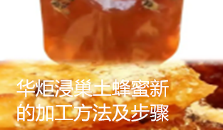 华炬新产品研究所技术咨询委员会科研人员现推荐一项一种浸巢土蜂蜜新的加工方法步骤,该技术采用这种先进的生产加工土蜂蜜的新方法新技术,完全使蜂巢和土蜂蜜中的营养成分保存了下来;解决了传统取蜜法对土蜂蜜品质破坏的不良影响以及巢脾蜜块切割中存在的问题,嚼而甜之,甜而久之,回味悠长而顺畅通鼻、色香味独佳,现将该一种浸巢土蜂蜜新的加工方法步骤及技术方案实施例介绍如下供研究交流参考:(311441 231465)