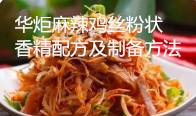 华炬新产品研究所技术咨询委员会科研人员现推荐一项一种麻辣鸡丝粉状香精配方及制备方法,该技术的麻辣鸡丝粉状香精,是以新鲜鸡肉为原料,经过蛋白酶水解,然后与氨基酸、 糖等进行一系列热反应,最后得到麻辣鸡丝香精,再经过喷粉加工得到的粉状香精醇厚感 强,回味足,麻辣味十足,风味奇特。 该技术所具有的有益效果: 1)、该技术制备的麻辣鸡丝粉状香精,醇厚感强,回味足,风味奇特且制造方法简单。 2)、该技术有效地降低了产品的脂肪含量,保持了同等风味条件下,食品的食用健康性。 3)、该技术制备的粉状产品,降低了产品的水分活度,便于保存和运输,并延长了产品 的保质期,现将该一种麻辣鸡丝粉状香精配方及制备方法及技术方案实施例介绍如下供研究交流参考:(311311 375511)