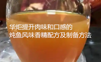 华炬新产品研究所技术咨询委员会科研人员现推荐一项一种提升肉味和口感的炖鱼风味香精配方及制备方法,该技术制造方法简单,所得炖鱼风味香精香气香味强度高,特征香气香味突出;并且具有肉香浓郁、口感醇厚的优点,在加香产品中只需很少的添加量就能起到提升肉味和口感的作用,现将该一种提升肉味和口感的炖鱼风味香精配方及制备方法及技术方案实施例介绍如下供研究交流参考:(341211 771426)
