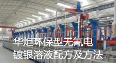 金属银具有很好的导电性焊接性和接触电阻低,广泛使用在高端电子元件、电器触点、贵重的仪器仪表上,目前的直流电镀银大多采用氰化物电镀,氰化物有剧毒会对环境造成污染和损害操作人员身心健康,目前也有使用无氰电镀但存在光亮低结晶不均匀,镀液不稳定。华炬新产品研究所技术咨询委员会科研人员现推荐一项一种环保型无氰电镀银溶液配方及方法,该技术产品配方合理,采用无氰配方环保无污染,减少对操作人员损害,所镀的产品光亮度好匀结合强度高,现将该一种环保型无氰电镀银溶液配方及方法及技术方案实施例介绍如下供研究交流参考:(611441 351451)