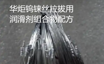 华炬新产品研究所技术咨询委员会科研人员现推荐一项一种钨铼丝拉拔用润滑剂组合物配方,该技术的显著优点在于:具有良好润滑性、冷却性、浸润性、扩散性、渗透性、防锈性,增加变形区内油膜强度,降低摩擦系数,保持油膜强度和厚度性能稳定;粘附性强,抗磨性、粘温性、冲洗性、化学稳定性能好;减少拉拔模具的磨损,有较小的流动剪切应力,提高被加工钨铼丝的表面光洁度、规格精度和抗腐蚀周期长,现将该一种钨铼丝拉拔用润滑剂组合物配方及技术方案实施例介绍如下供研究交流参考:(611511 377344)