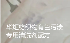 华炬新产品研究所技术咨询委员会科研人员现推荐一项一种纺织物有色污渍专用清洗剂配方,该技术有益效果:该技术提供的一种纺织物有色污渍清洗剂,对有色污渍有很好的去除效果,尤其是对圆珠笔油和墨水留下的污斑,去除率高达99%,并且,该清洗剂在去除有色污渍的同时能够杀灭细菌,不损害纺织物本身,现将该一种纺织物有色污渍专用清洗剂配方及技术方案实施例介绍如下供研究交流参考:(571311 553627)