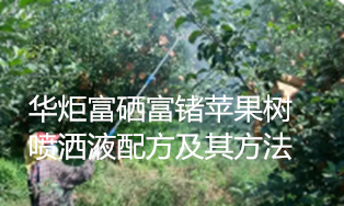 华炬新产品研究所技术咨询委员会科研人员现推荐一项一种富硒富锗苹果树喷洒液配方及方法,该技术的富硒富锗果蔬喷洒液是采用天然饼柏类原料发酵制成有机肥和 糖醇作为有机螯合液体肥料,配合微量元素锗和其他微肥,做成的水溶性喷 洒液,吸收效果好,保证了农作物对硒和锗元素的平衡吸收,从而有效的控 制了果蔬中硒和锗的含量,既保证了食品安全又可以有效提高果蔬中硒和锗 的含量,提高了果蔬的肥力,增加了农作物产量,为人们提供了一种安全、 多功能、健康的农作物喷洒液,现将该一种富硒富锗苹果树喷洒液配方及方法及技术方案实施例介绍如下供研究交流参考:(241211 221382)