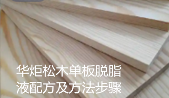 华炬新产品研究所技术咨询委员会科研人员现推荐一项一种松木单板脱脂液配方及方法步骤,该技术可使松木单板脱脂率达到70%以上,材色保持松木新鲜材色,物理力学性质下降较小,完全可满足家具的要求。该技术具有易于实现、操作方便、生产成本低,更为重要的是利用该技术不产生废水,提高松木的附加值,创造就业岗位,有利于促进人工林资源与生态、社会的和谐发展。该技术是一种易于实现、操作方便、环保、生产成本低的松木单板的脱脂方法,现将该一种松木单板脱脂液配方及方法步骤及技术方案实施例介绍如下供研究交流参考:(271211 121354)