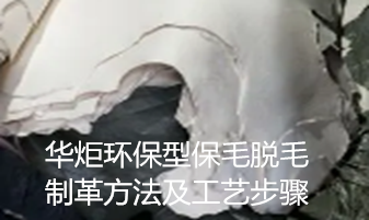 华炬新产品研究所技术咨询委员会科研人员现推荐一项一种环保型保毛脱毛制革方法及工艺步骤,该技术的优点在于: (1)对皮毛的破坏性弱,可进行保毛脱毛,保持浸灰液中毛发的完整性,大大降低了废水COD值; (2)分离出的毛发等有机物因含有大量的氨基酸等营养成分,可充分利用;(3)浸灰悬浮液易沉降、分离、易压缩处理,(4)该方法具有脱毛效果好,处理时间短,废水污染物指标显著降低,浸灰液可循环使用等优点现将该一种环保型保毛脱毛制革方法及工艺步骤及技术方案实施例介绍如下供研究交流参考:(311211 344655)
