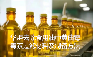 黄曲霉毒素(aflatoxin)也称作黄曲霉素,对人和动物有剧烈的急性毒性和明显的慢性毒性,是一种极强的致癌、致突变的剧毒物质。黄曲霉毒素主要损害人及动物的肝脏组织,同时肾脏也可受损害。黄曲霉毒素还会降低免疫能力,可诱发多种癌症如胃癌、肾癌、直肠癌、乳腺癌、卵巢及小肠等部位的肿瘤。1993年黄曲霉毒素被世界卫生组织癌症研究机构认定为一类致癌物,在天然污染的食品中又以黄曲霉毒素B1最为多见,其毒性和致癌性亦是最强,其毒性为氰化物的10倍,砒霜的68倍。黄曲霉毒素主要污染粮油食品、动植物食品等,如花生、玉米,大米、小麦、豆类、坚果类、肉类、乳及乳制品、水产品等均可能受到污染,其中以花生和玉米污染最严重。由于受到原料影响,在食用油中花生油含黄曲霉毒素的几率最大,含量也最高。国内新榨花生油中,黄曲霉毒素往往偏高,需要进行去除处理。据2017年7月11号南方日报报道,在广东省疾控中心近年抽检中,散装花生油黄曲霉毒素B1污染率达20%。GB2716-2005《食用植物油卫生标准》规定花生油、玉米胚油中黄曲霉毒素B1的最大限量为20μg/kg,其它食用植物油中黄曲霉毒素B1的最大限量为10μg/kg。目前对于食用油中黄曲霉毒素的去除方法主要包括物理、化学和生物方法。物理方法主要是吸附法和辐照法;化学方法主要是采用化学试剂对产品进行反应处理;生物方法主要是采用酶解的方式进行处理。常用的吸附剂包括酵母细胞壁,硅铝酸盐等,但不能解除黄曲霉毒素的毒性;化学试剂的反应容易造成试剂的残留;酶解反应复杂,不易控制。因此,目前市场急需找到一种简易、安全、有效的去除黄曲霉毒素的技术。 华炬新产品研究所技术咨询委员会科研人员现推荐一项去除食用油中黄曲霉毒素的过滤材料及制备方法,该技术,现将该去除食用油中黄曲霉毒素的过滤材料及制备方法及技术方案实施例介绍如下供研究交流参考:(371541 741462)
