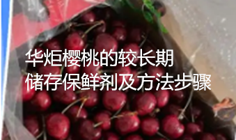 华炬新产品研究所技术咨询委员会科研人员现推荐一项一种樱桃的较长期储存保鲜剂及方法步骤,该技术提供了有利于樱桃的贮藏的适宜条件,解决了樱桃储存过程中失水、腐烂快的问题,并且能降低樱桃的呼吸强度,推迟呼吸跃变,延缓后熟时间,延长保鲜期且不会破坏质地,延长了樱桃的食用时间,效果明显,现将该一种樱桃的较长期储存保鲜剂及方法步骤及技术方案实施例介绍如下供研究交流参考:(241271 231504)
