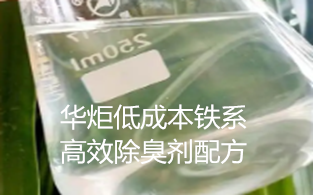 华炬新产品研究所技术咨询委员会科研人员现推荐一项一种低成本铁系高效除臭剂配方,该技术铁系高效除臭剂中的壳聚糖是一种天然高分子吸附剂,可有效吸附、吸收臭 气分子,高铁酸钾具有强氧化性,可有效去除具有还原性的含硫类臭气,乙酸则去除含氮类 臭气,现将该一种低成本铁系高效除臭剂配方及技术方案实施例介绍如下供研究交流参考:(971221 281505)
